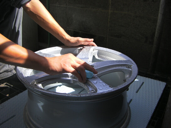メンナンスではホイールをキレイに洗浄したのち、新たにフッ素コーティングを施します。